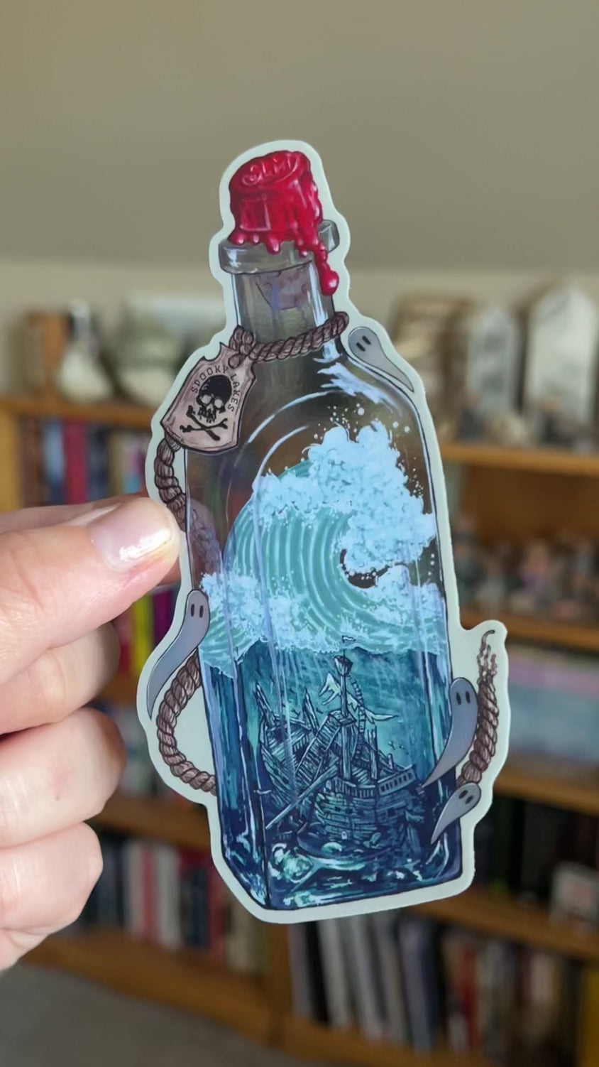 This sticker is glossy and CLEAR behind the glass bottle and the ghosties! Each die-cut sticker is a thick, durable vinyl with a glossy finish. They are resistant to scratching, water, and sunlight.