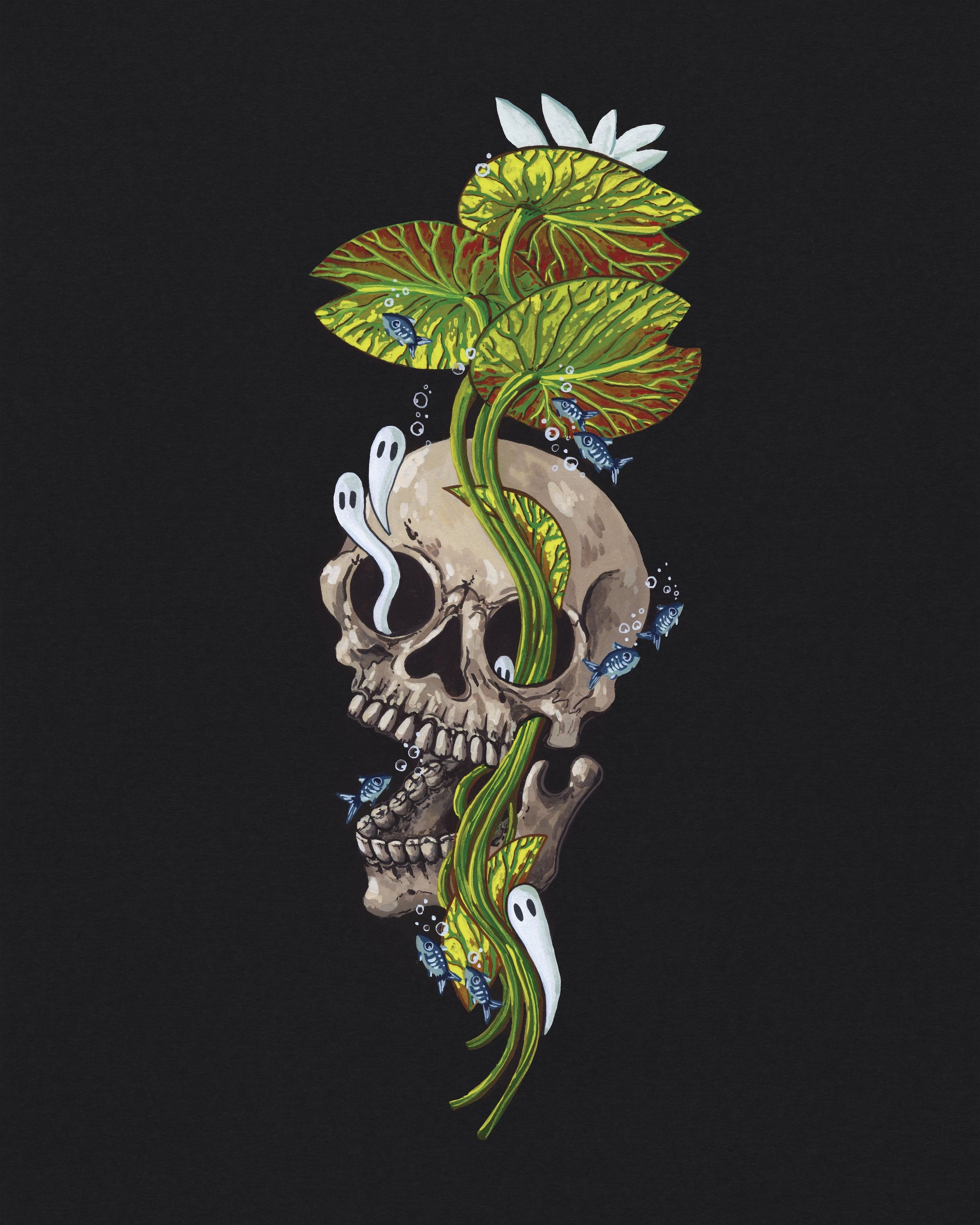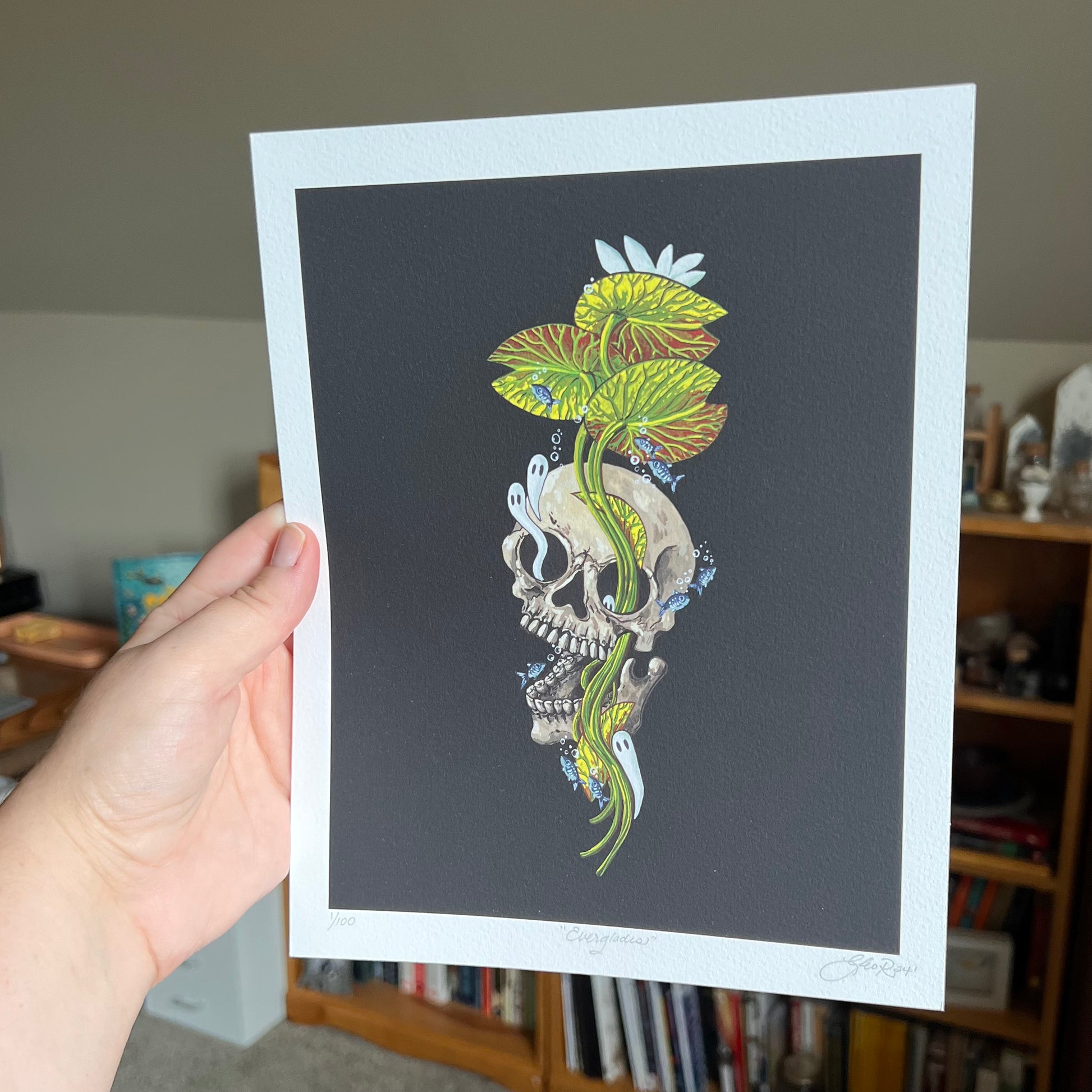 This design was inspired by the Everglades and the bog skeletons found in peat marshes in Florida. I haven't officially done the Everglades for Spooky Lake Month....but maybe someday! A watery grave, indeed.