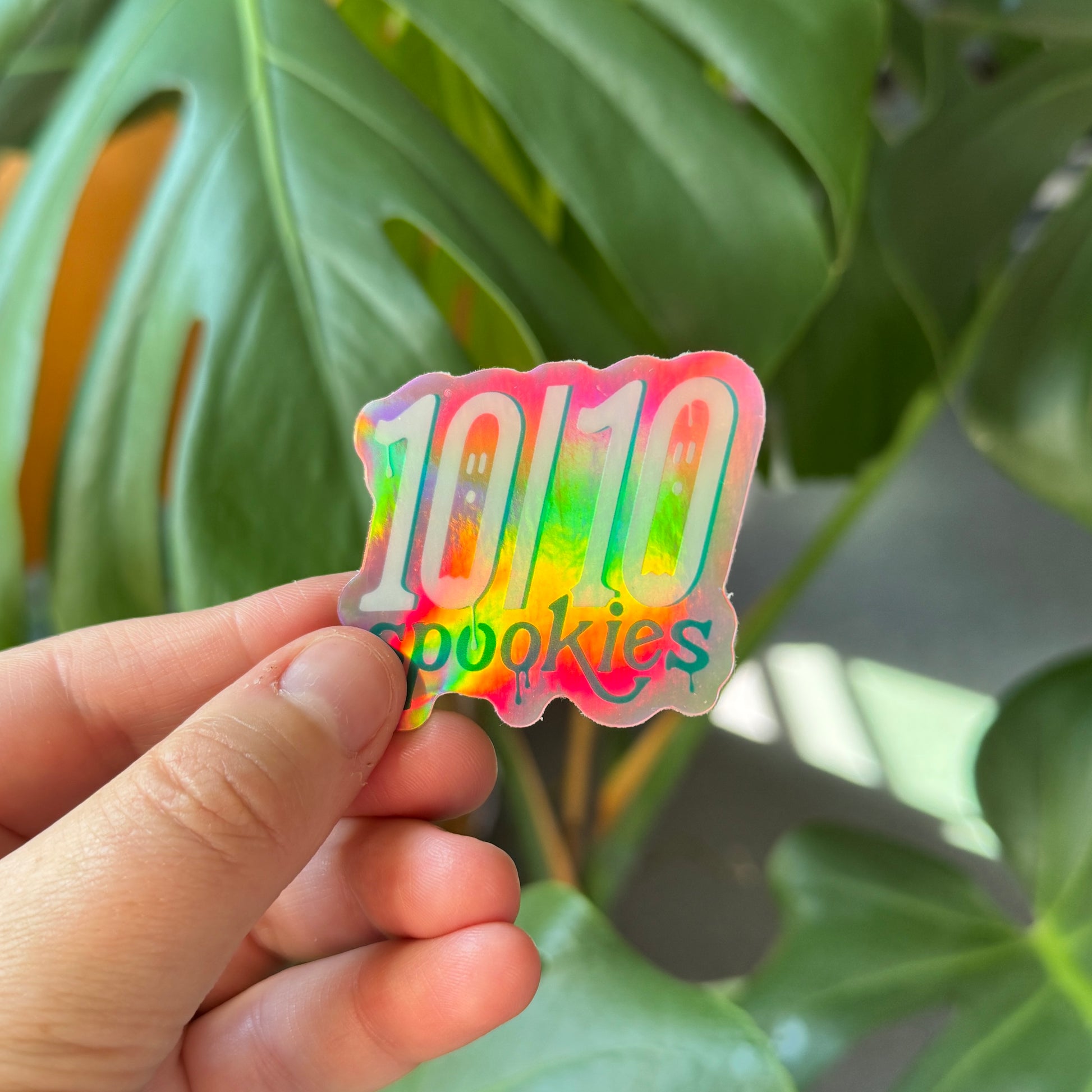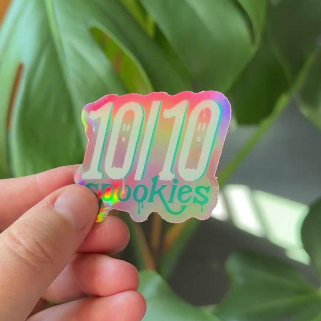 10/10 Spookies (holographic): 2" x 1.61" (only in the Sticker Pack!)