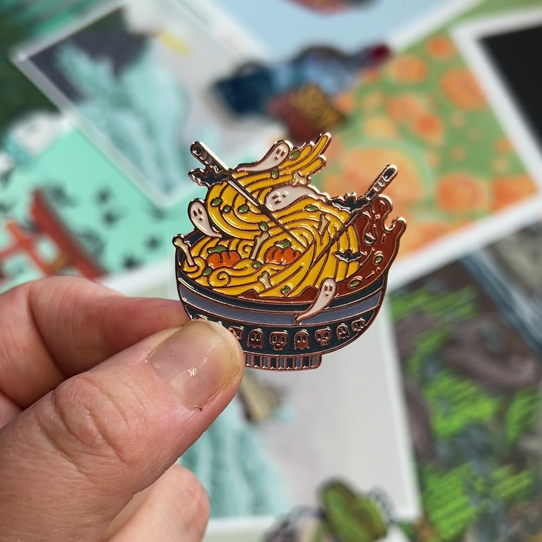 The favorite soup painting and sticker from 2023 is now an enamel pin! My collaborator, KJ & Co, created this design based on my painting. These enamel pins are die-struck, underfilled with the enamel color, and then baked in an oven so the enamel can cure.