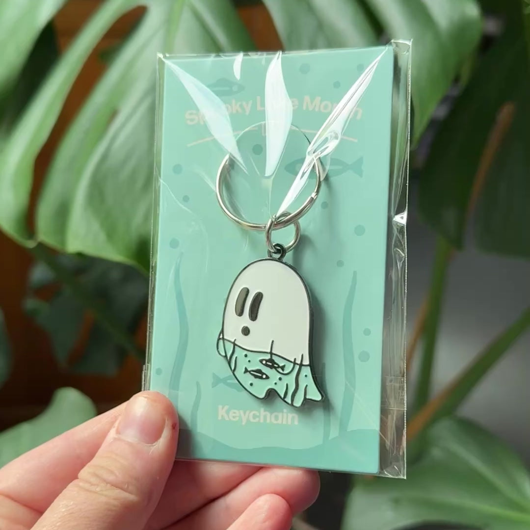 A Spooky Lake Month wet ghosty keychains! We have these as enamel pins too, but they were so popular we decided they would be cute as keychains! I asked for a wet little ghostie and KJ & Co came through! It's so cute!